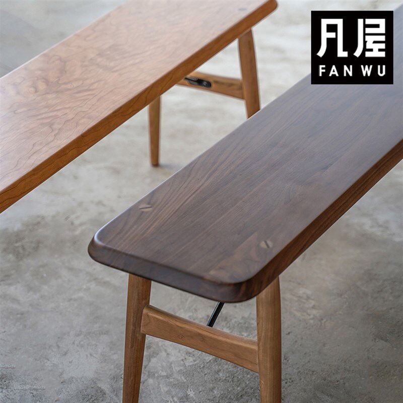 时作 卍字悬浮长凳 实木长条凳餐桌长凳玄关凳床尾凳黑胡桃樱桃木