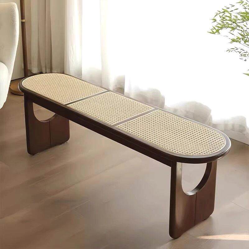 北欧藤编长凳ins原木实木餐椅家用凳子昌迪加尔床尾长条凳换鞋凳