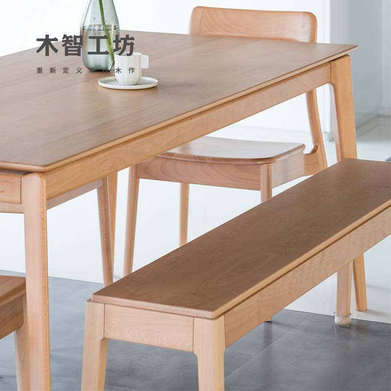北欧全实木床尾长凳子现代简约家用餐桌椅组合原木色餐厅长条板凳