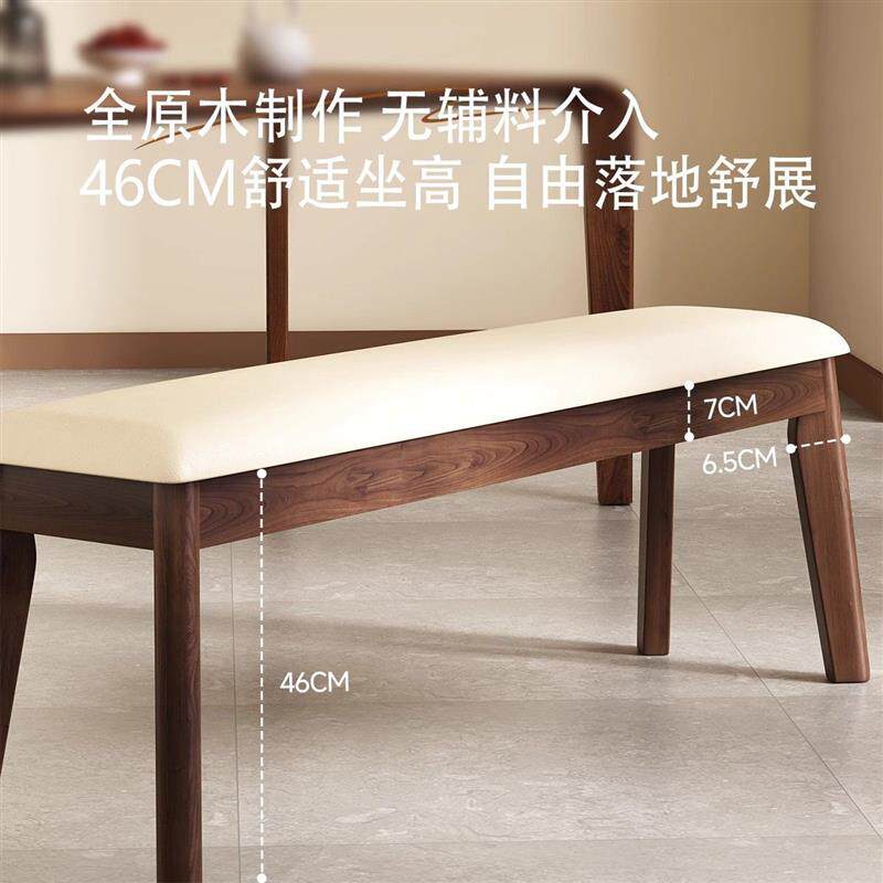 北欧实木长条凳黑色家用餐桌长凳胡桃色原木凳子现代服装店换鞋凳