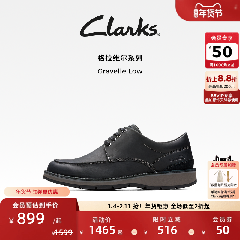 Clarks其乐Gravelle Low男鞋健步鞋休闲商务皮鞋简约圆头牛皮皮鞋
