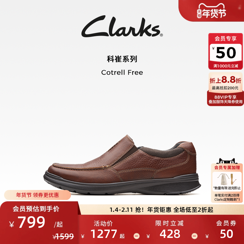 clarks其乐男鞋秋季款轻质透气商务套脚休闲皮鞋Cotrell Free现货