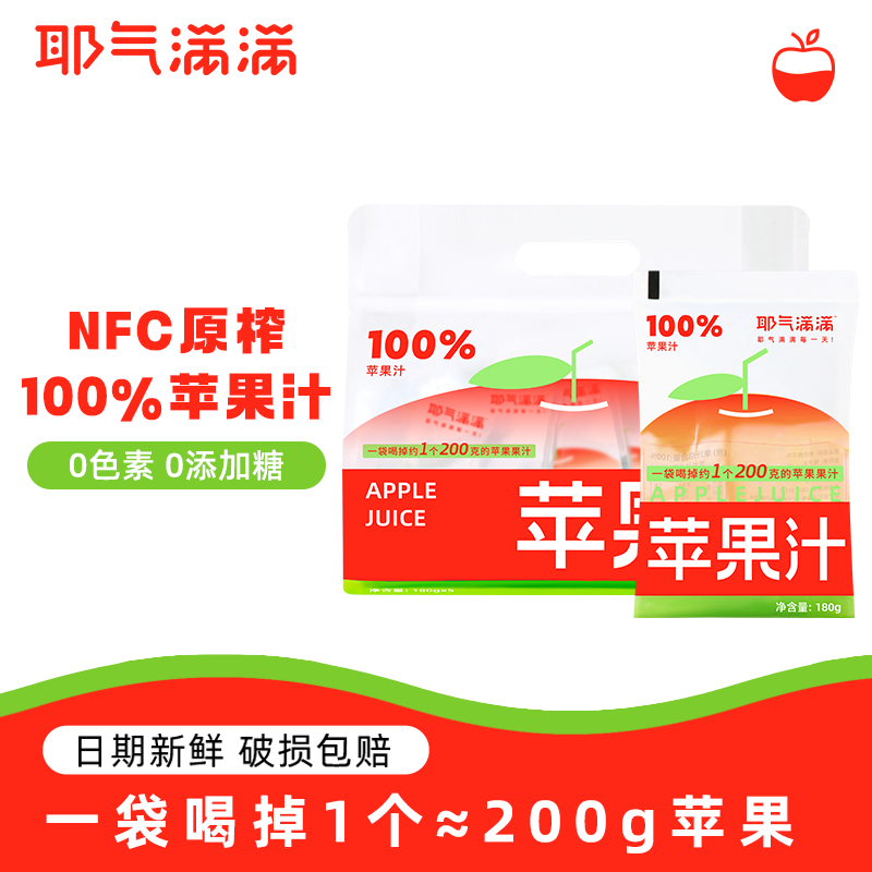 耶气满满苹果汁100%0脂肪饮料NFC新鲜果汁饮料口感浓缩酸甜便携装