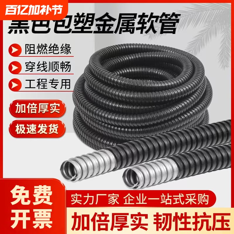 国标包塑金属软管穿线管蛇皮管电线电缆保护套平包阻燃塑料波纹管