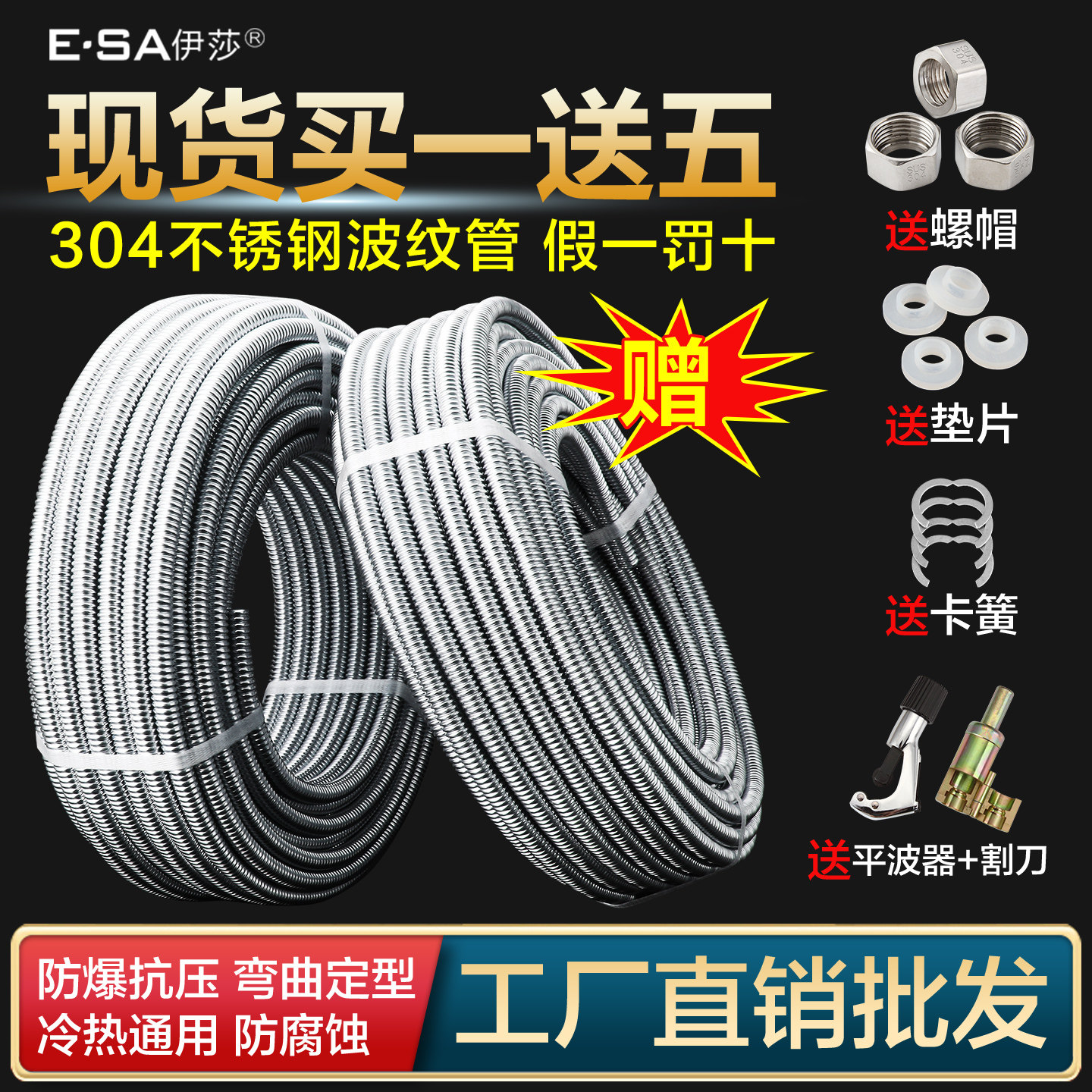 304不锈钢波纹管4分6分热水器连接冷热水管耐热高压防爆金属软管