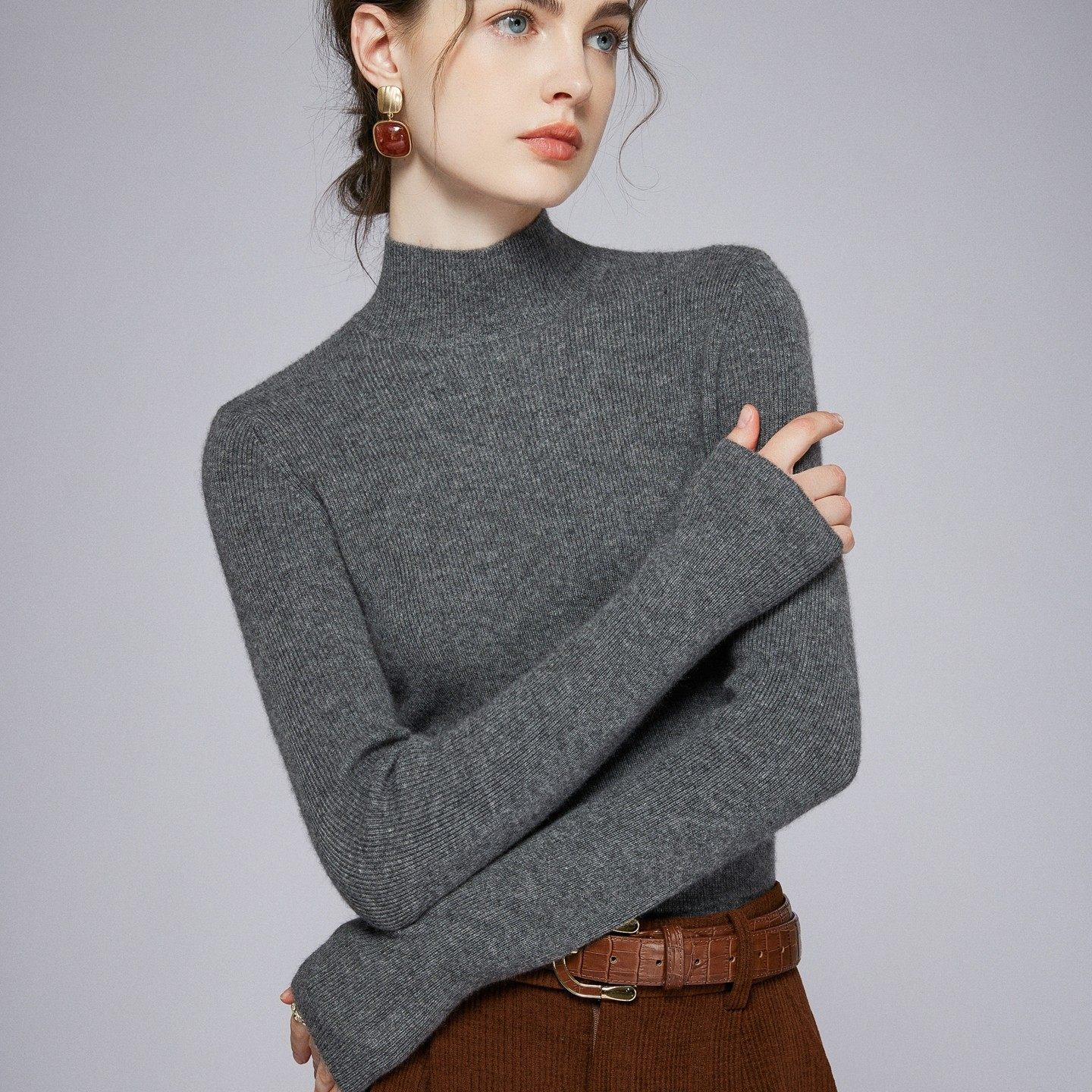 - 秋冬韩版新款女士毛衣套头中长款前短后长宽松大码针织衫打底上衣