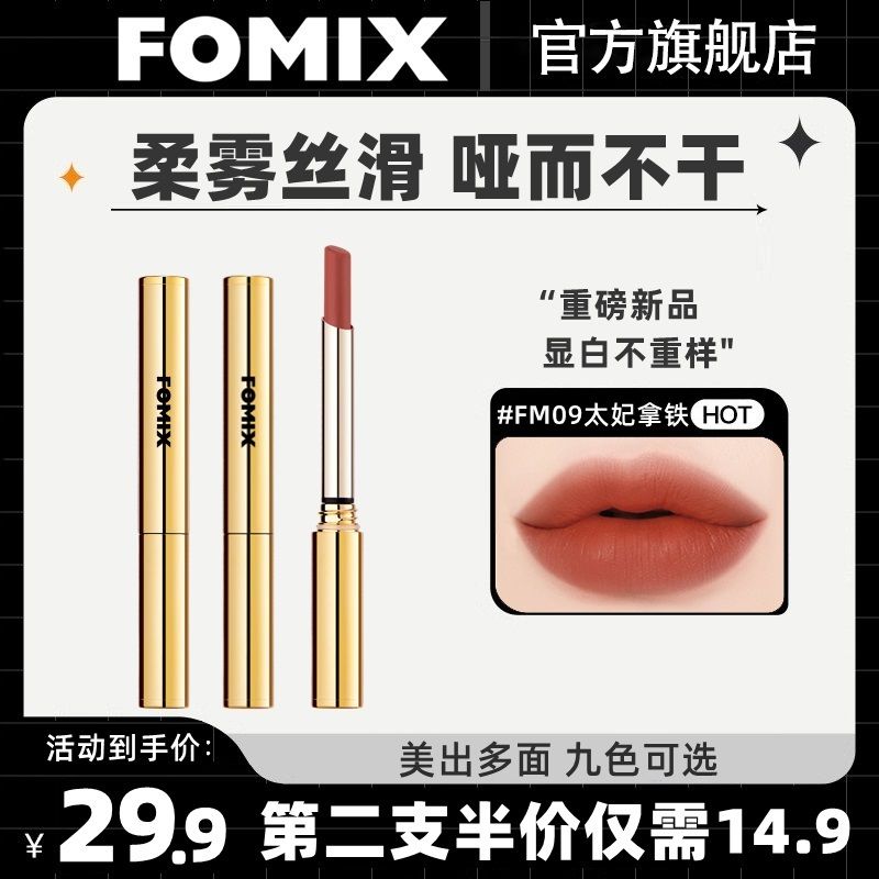 FOMIX羽纱炫色哑光口红雾面丝绒显白不沾杯隐匿唇纹持妆显色唇膏p