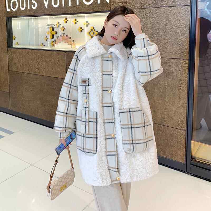 韩新加ZZB1018厚羊羔毛拼接羽绒服女版冬季款显保暖长款瘦白鸭绒