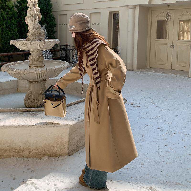 卡其色韩女版炸街羽绒内胆毛呢大衣级冬新系款高感加厚B27-282带