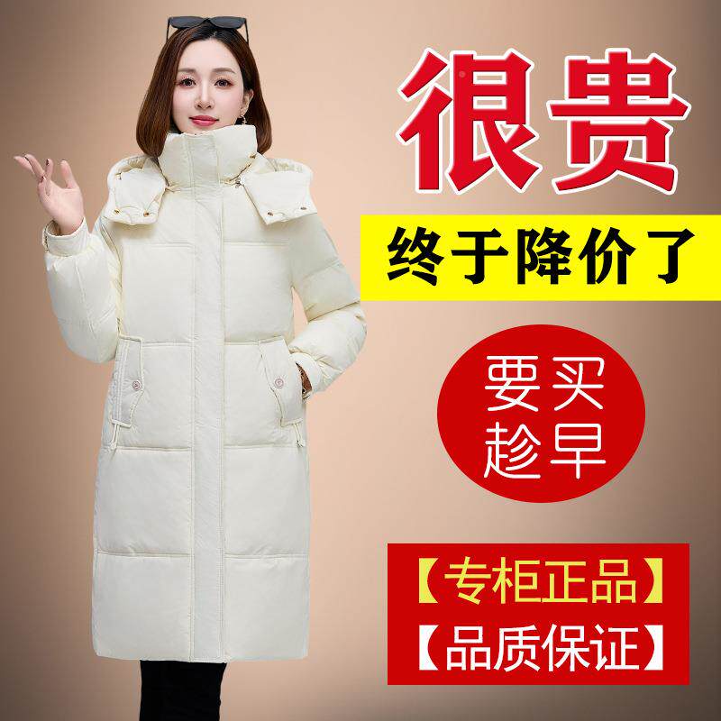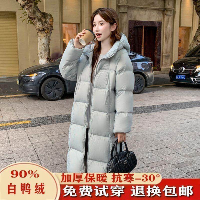- 白鸭绒过膝羽绒服女
