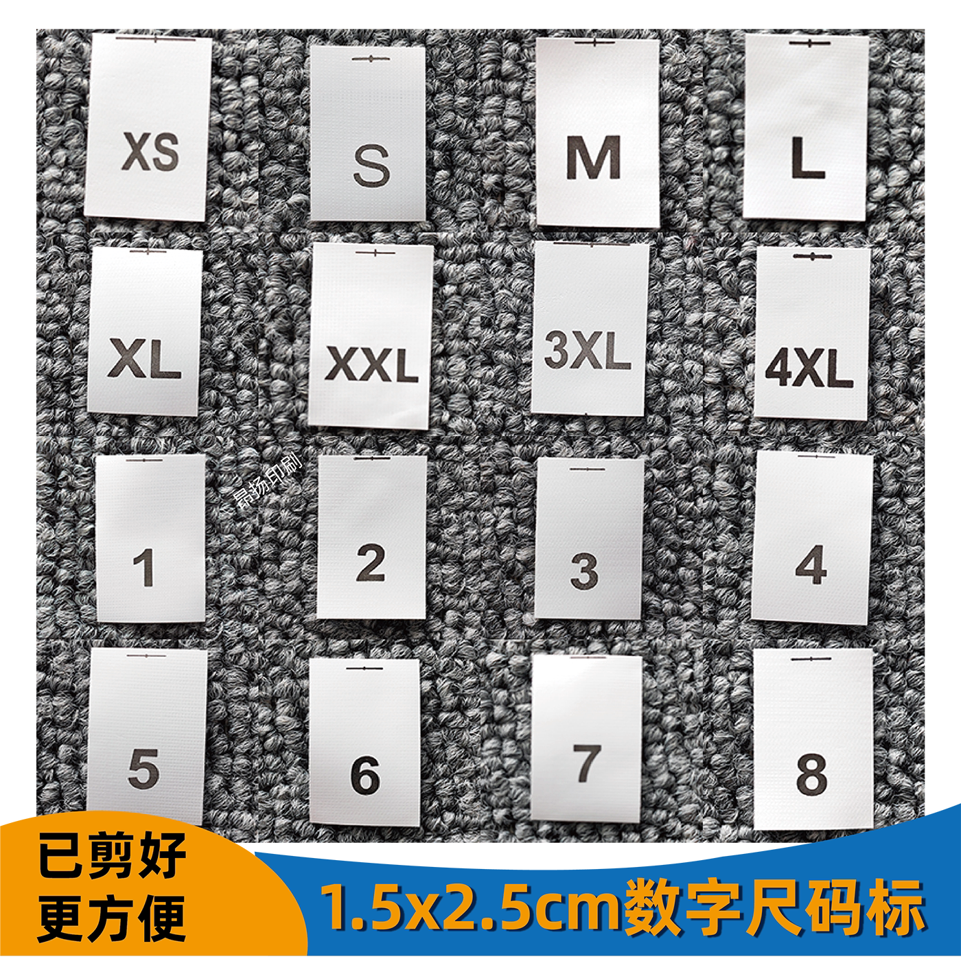 1.5*2.5cm 数字水洗标工号标服装衣服尺码编号标合成带耐水洗布标