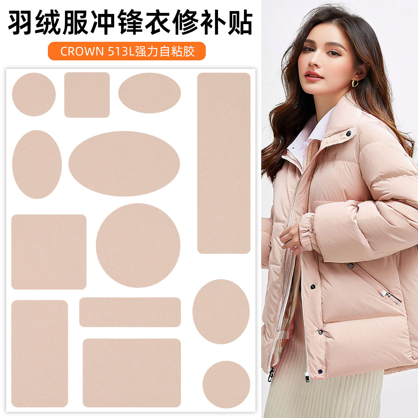 肉粉色羽绒服自粘布贴无痕衣服补丁贴破洞修复修补可水洗强力自粘