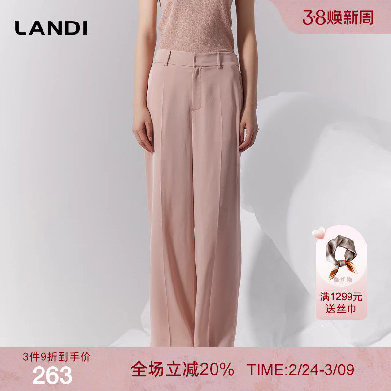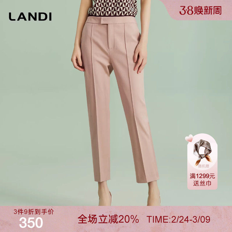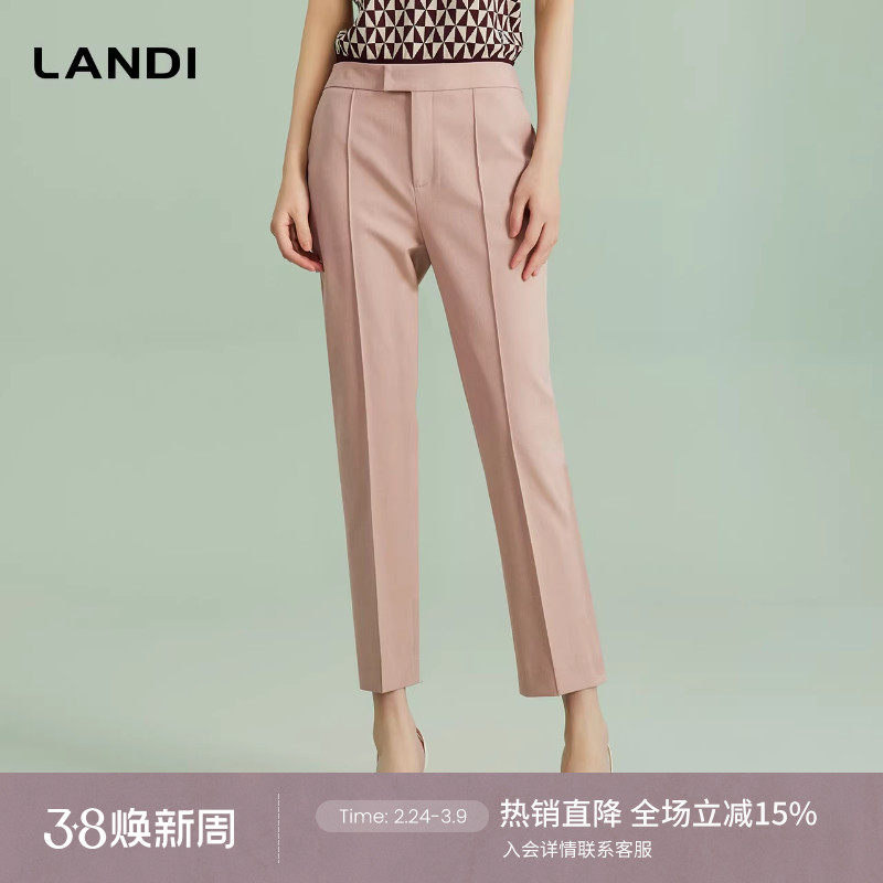 [商场同款]LANDI蓝地裸粉色修身显瘦高腰直筒长裤女西装裤春新品