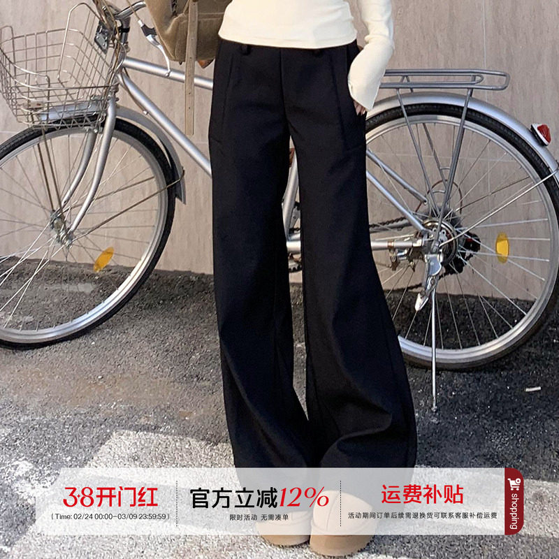 巴卜Studio黑色直筒西装阔腿裤女春季高腰垂感宽松显瘦休闲拖地裤