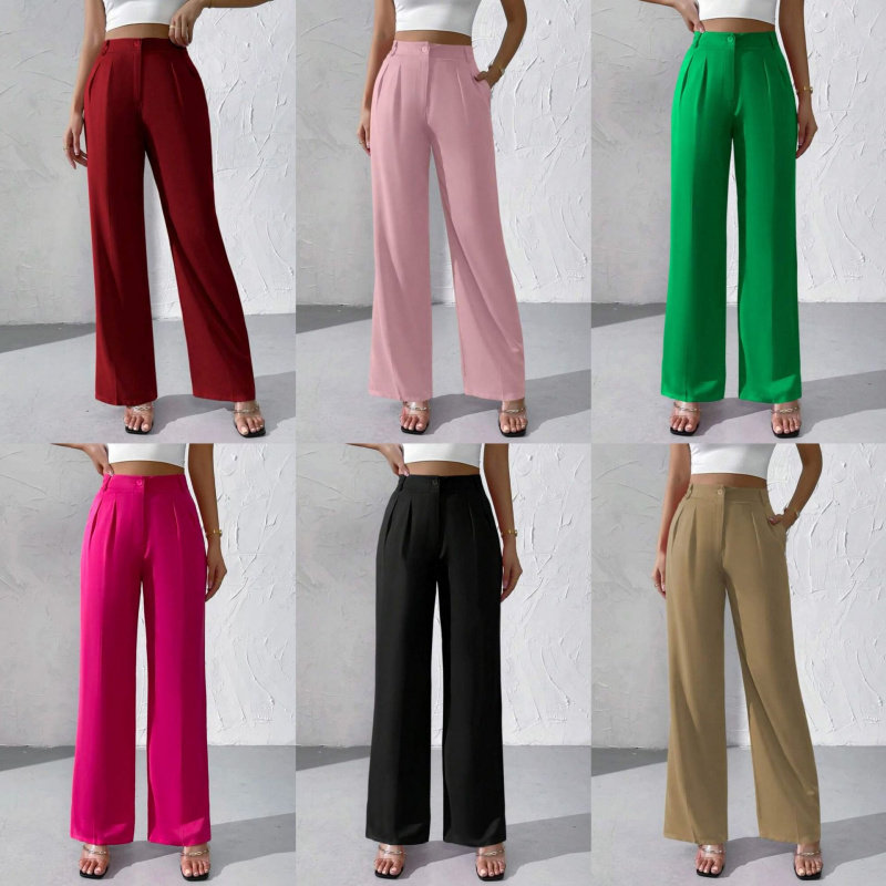 2024欧美跨境外贸新款优雅纯色高级垂感阔腿正装裤长裤女西装裤