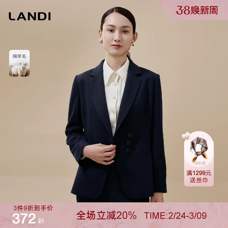 [都市精英套装]LANDI斜门襟设计感修身西服外套女西装裤冬新品