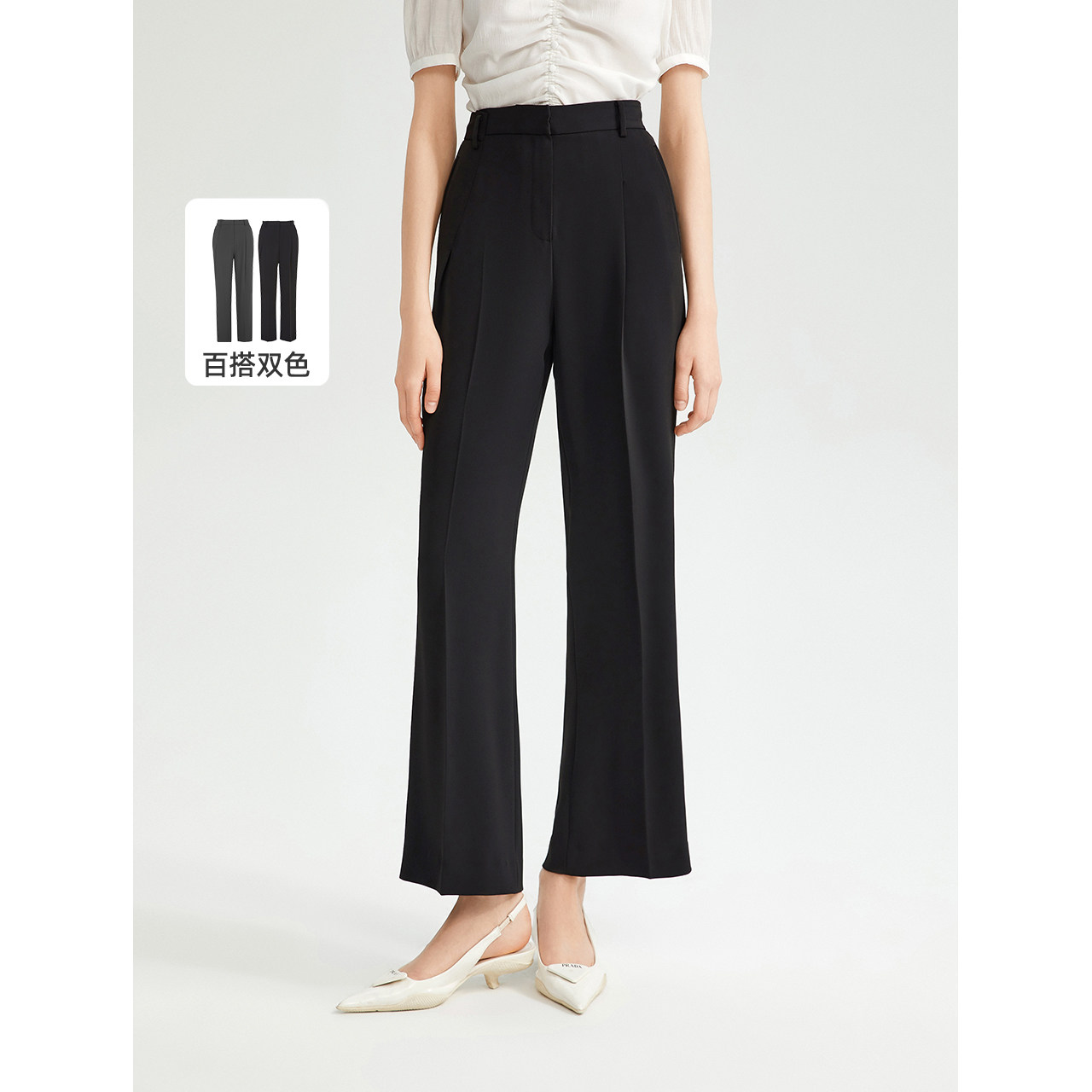 【七七酱直播间】朗姿百搭质感美丽诺羊毛直筒长裤女西装裤西裤2