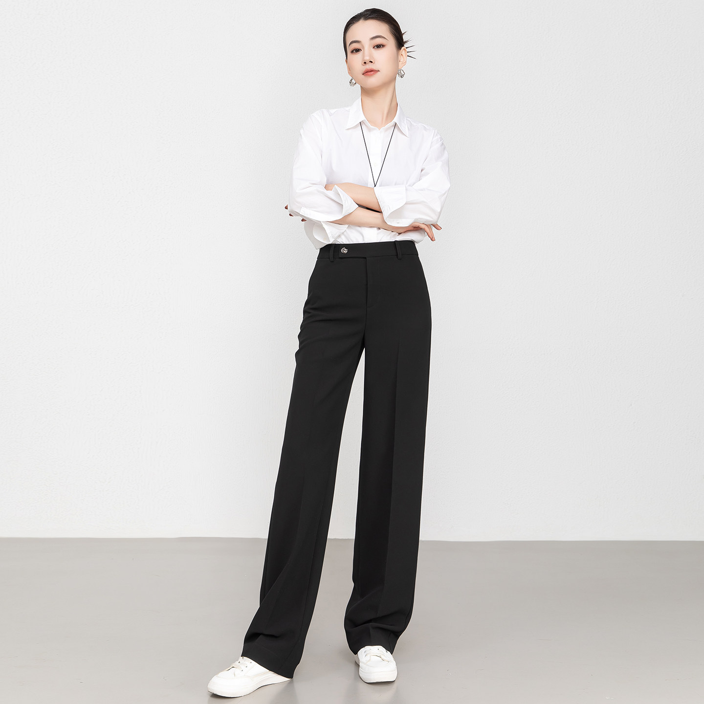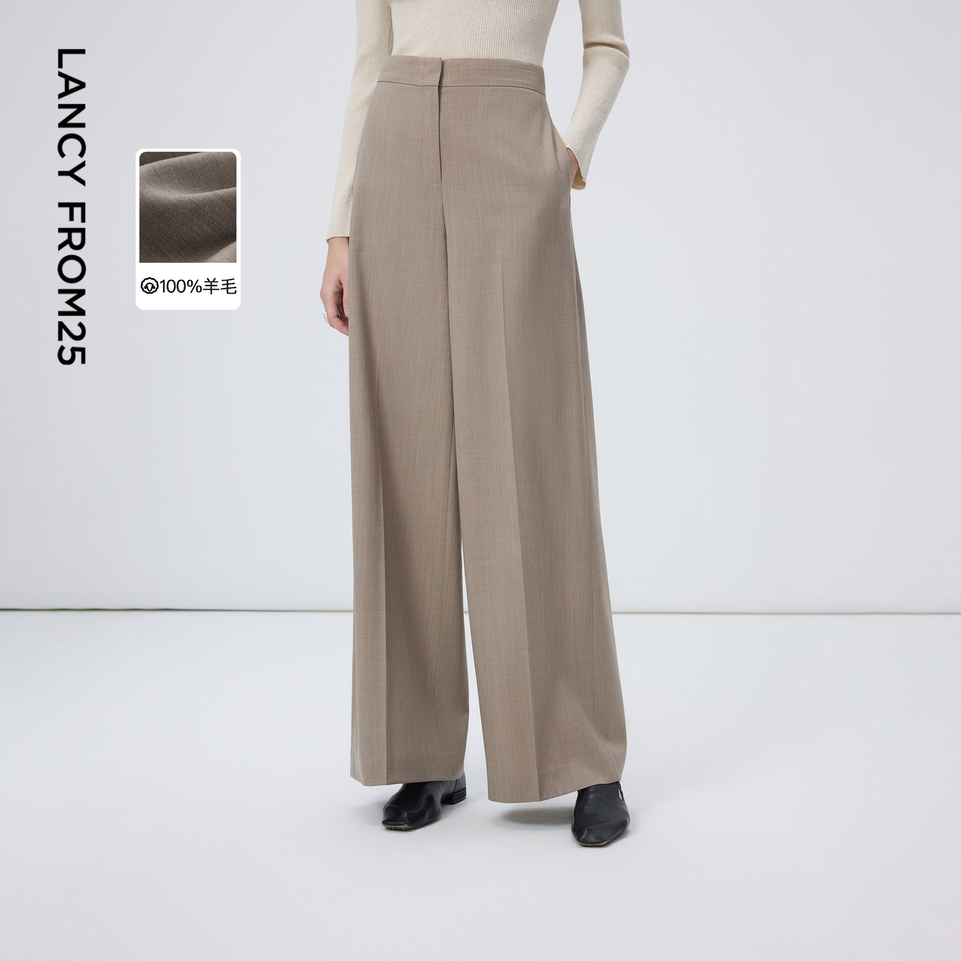 朗姿百搭质感美丽诺羊毛直筒长裤女西装裤西裤2026年春季新款