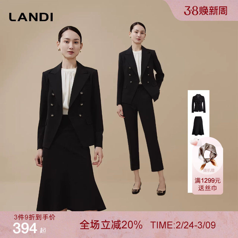 [商务知性套装]LANDI高级感双排扣西服外套女西装裤半裙秋新品