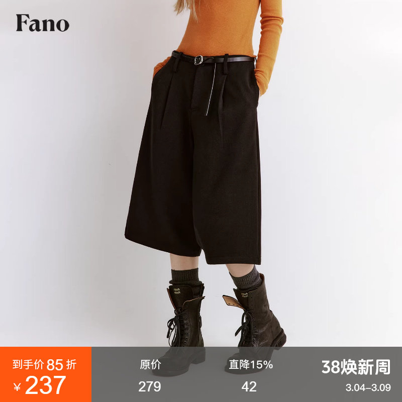 范洛Fano 时髦造型感绵羊毛混纺宽松褶裥掉裆中裤女西装裤2025冬