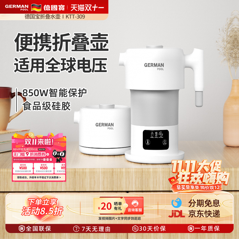 德国宝电热水壶便携式折叠旅行出差智能调节变压全球通用电热水壶