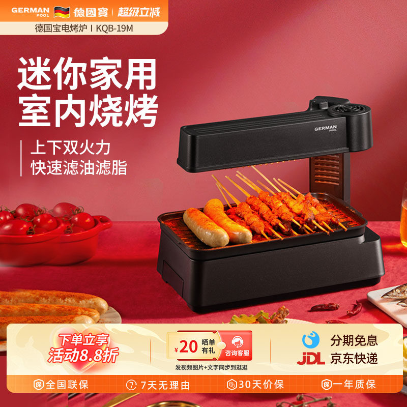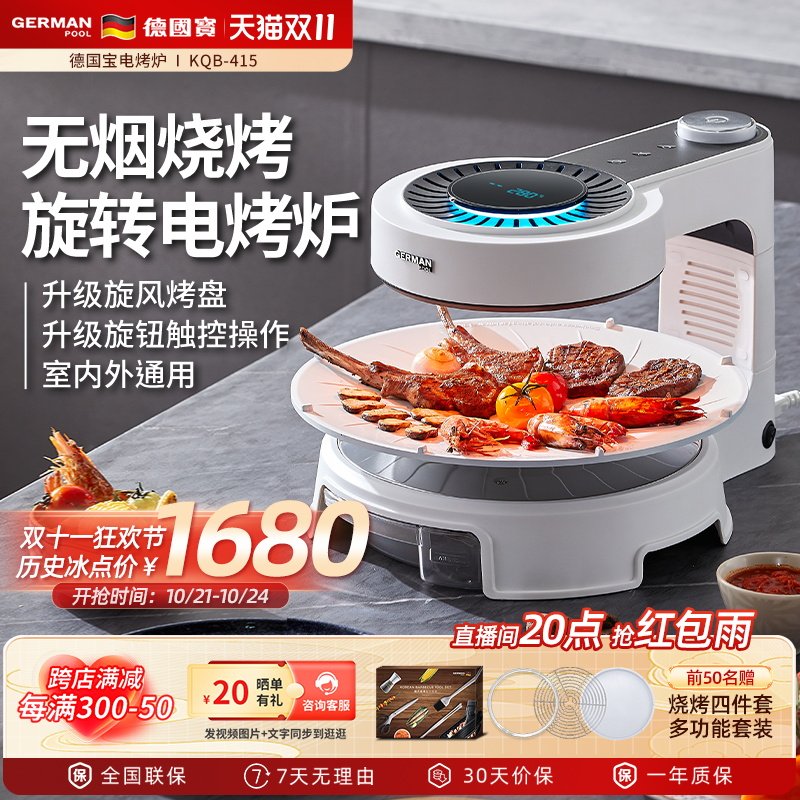 德国宝电烤炉烤肉炉烤鱼电烤盘家用室内无油烟户旋转式户外烧烤炉