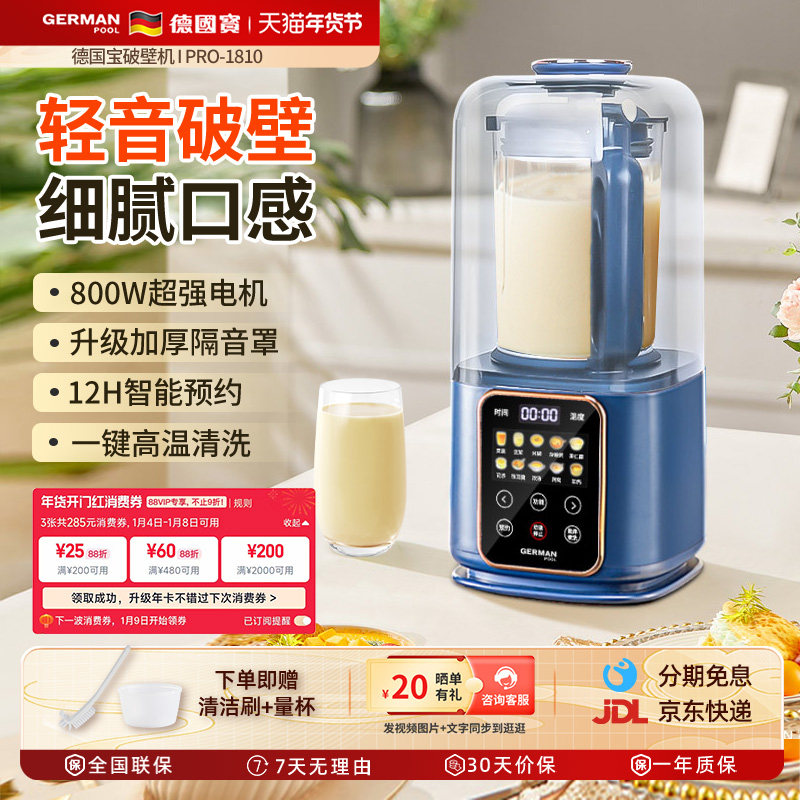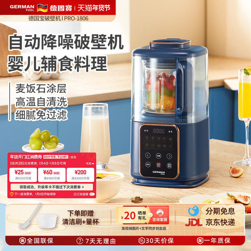 德国宝婴儿辅食破壁机豆浆机小型自动降噪预约加热多功能豆浆料理