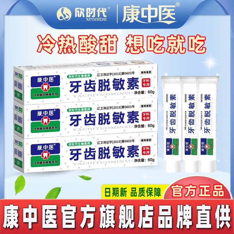 康中医牙齿脱敏素3支 牙龈抗冷热酸甜异味臭萎缩孕妇口腔薄荷牙膏