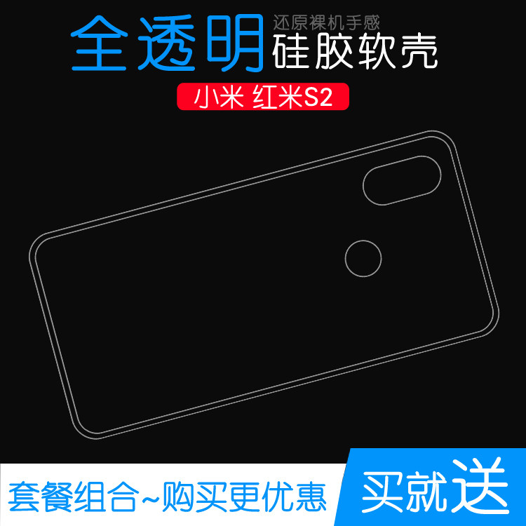 适用于小米Redmi S2手机水晶套高清硅胶壳红米专用后盖壳全透明壳弧边机盖防掉落外壳塑料防震软边不易黄裸壳