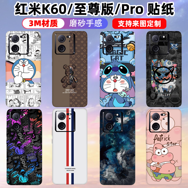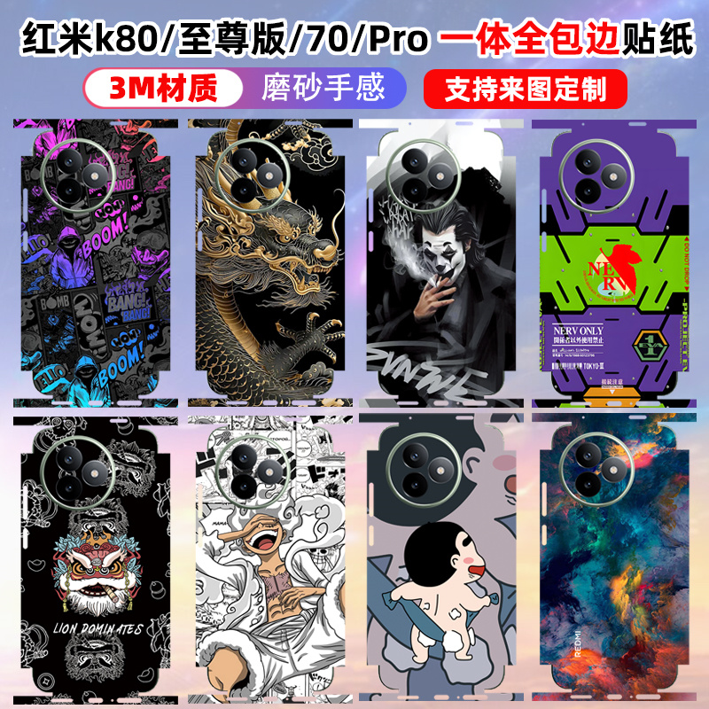 适用于红米K90/K90promax贴纸全包边背膜3m磨砂冠军版个性卡通动漫彩膜定制保护膜K80至尊/K70/Pro后盖贴膜