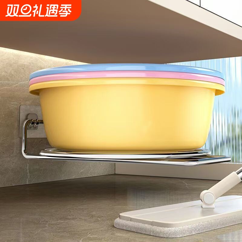 脸盆收纳架盆子浴室柜下盆架卫生间免打孔洗漱台壁挂不锈钢置物架