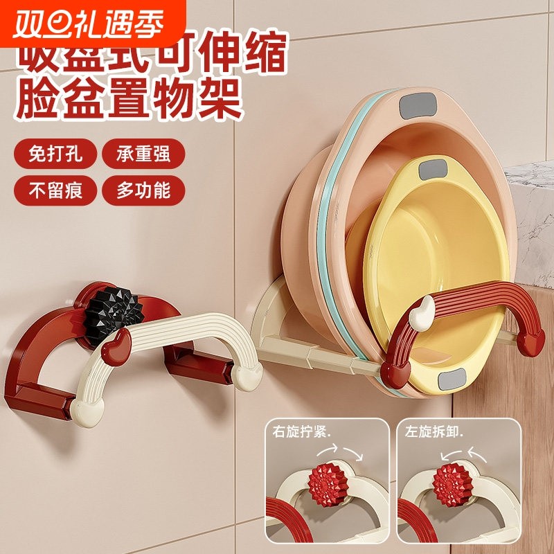 新款吸盘伸缩脸盆架壁挂免打孔浴室置物架厕所洗澡脚盆收纳沥水架