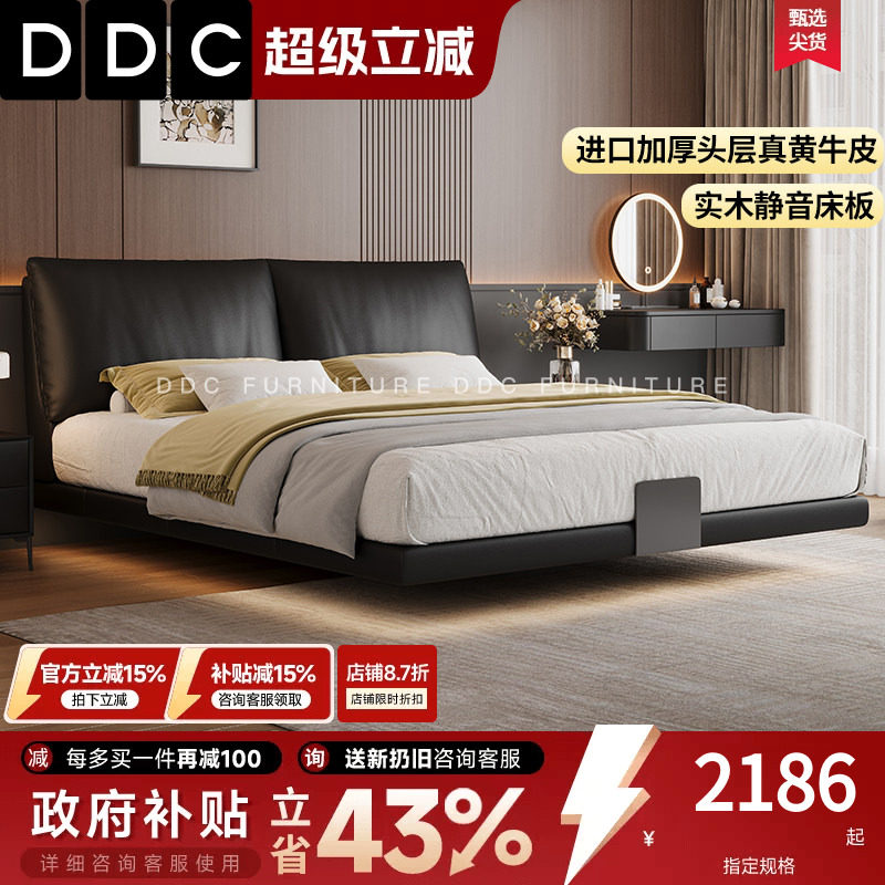DDC黑色悬浮床真皮床现代主卧大床意式卧室双人床实木床2026新款