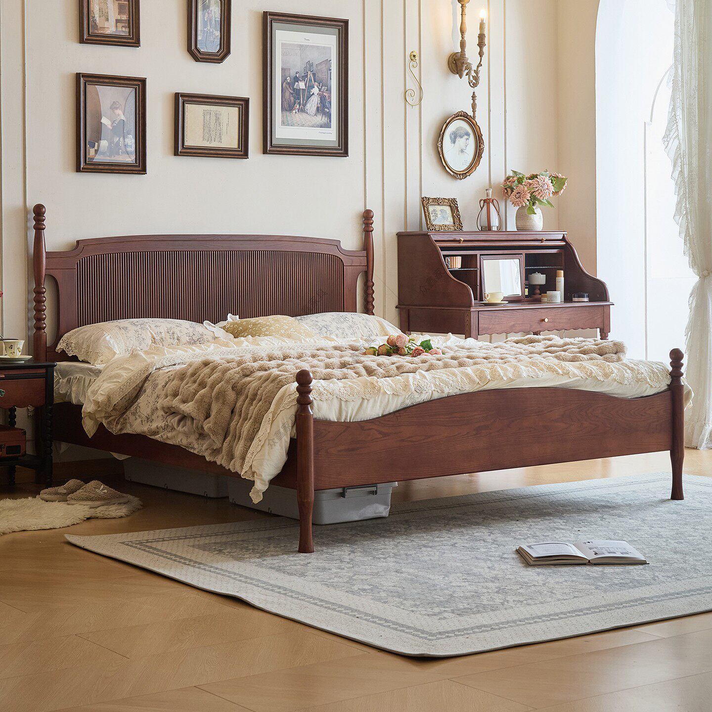 法式复古爱丽丝床1.8米中古风主卧床1.5米次卧白蜡木双人床实木床