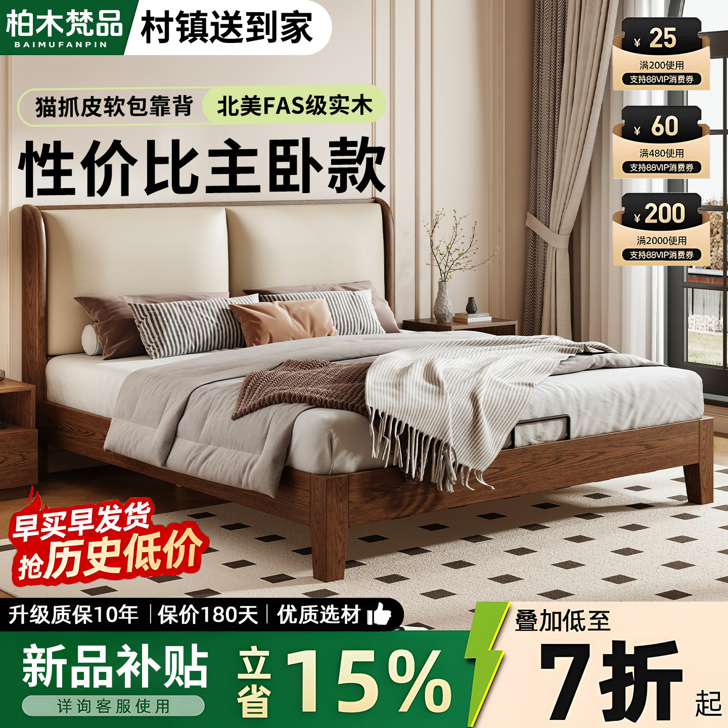 - 橡木双人床