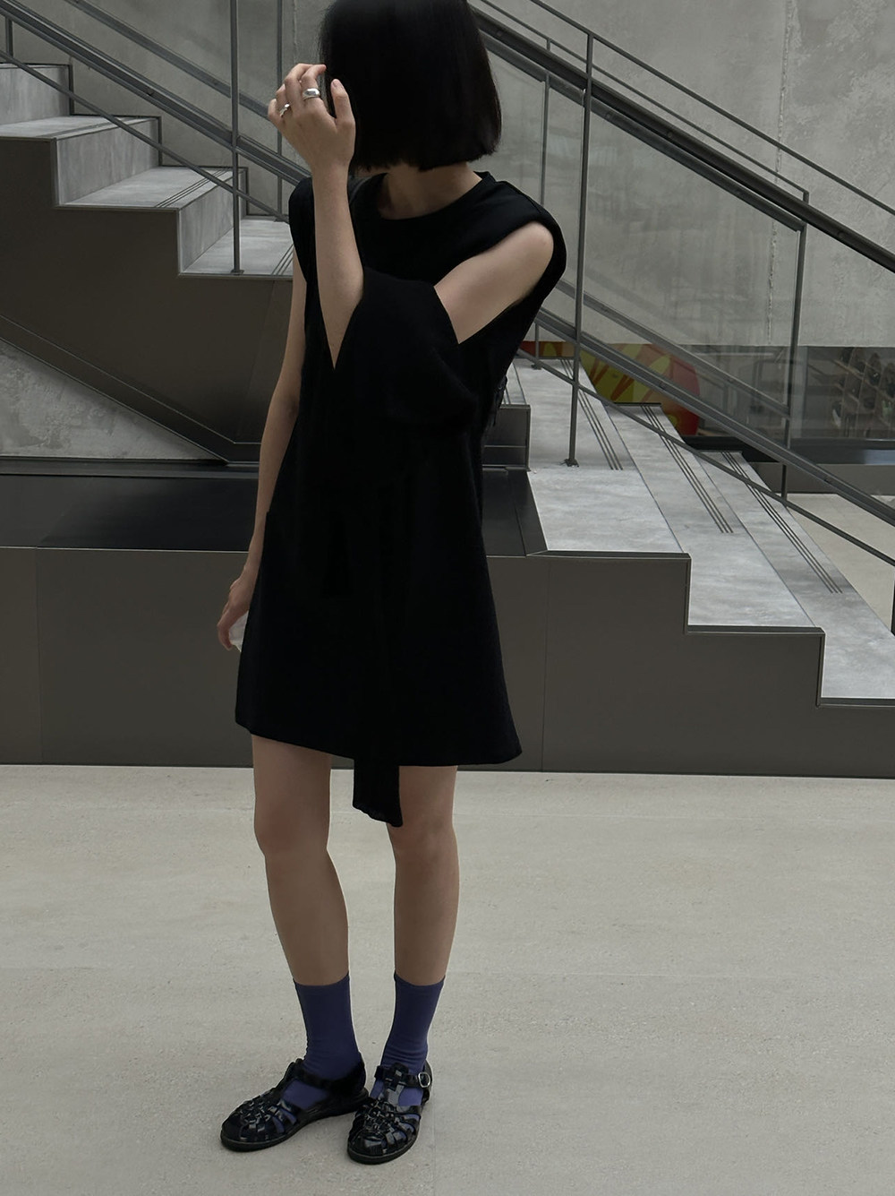 NEW STUDIO牛牛家 夏季基础款休闲女士垫肩直筒T恤连衣裙 黑色