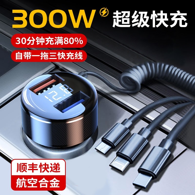 车载充电器线超级快充头手机点烟器转换插头一拖三车充汽车用usb