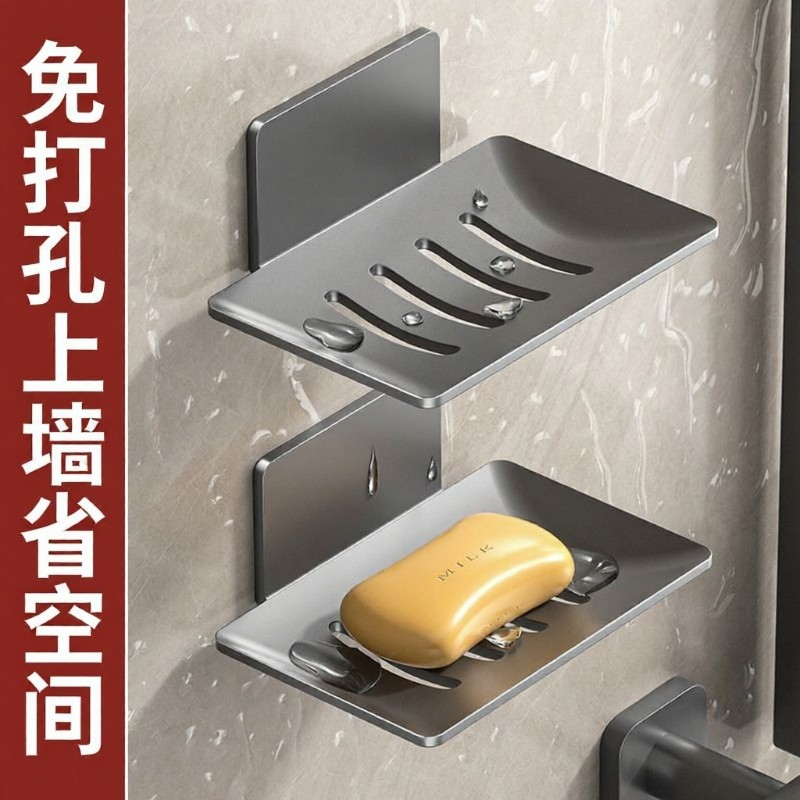 肥皂盒壁挂式沥水置物架家用免打孔浴室高档卫生间双层新款香皂盒