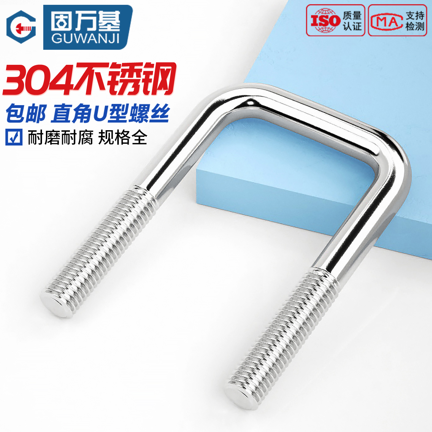 304不锈钢直角U型螺丝M6M8M10骑马卡扣水管卡箍直角螺栓方形挡板
