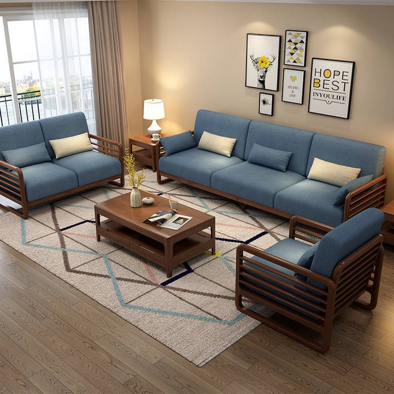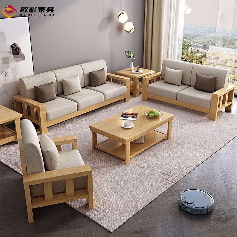 中式实木沙发现代简约家用小户型客厅三人位木质布艺沙发组合家具