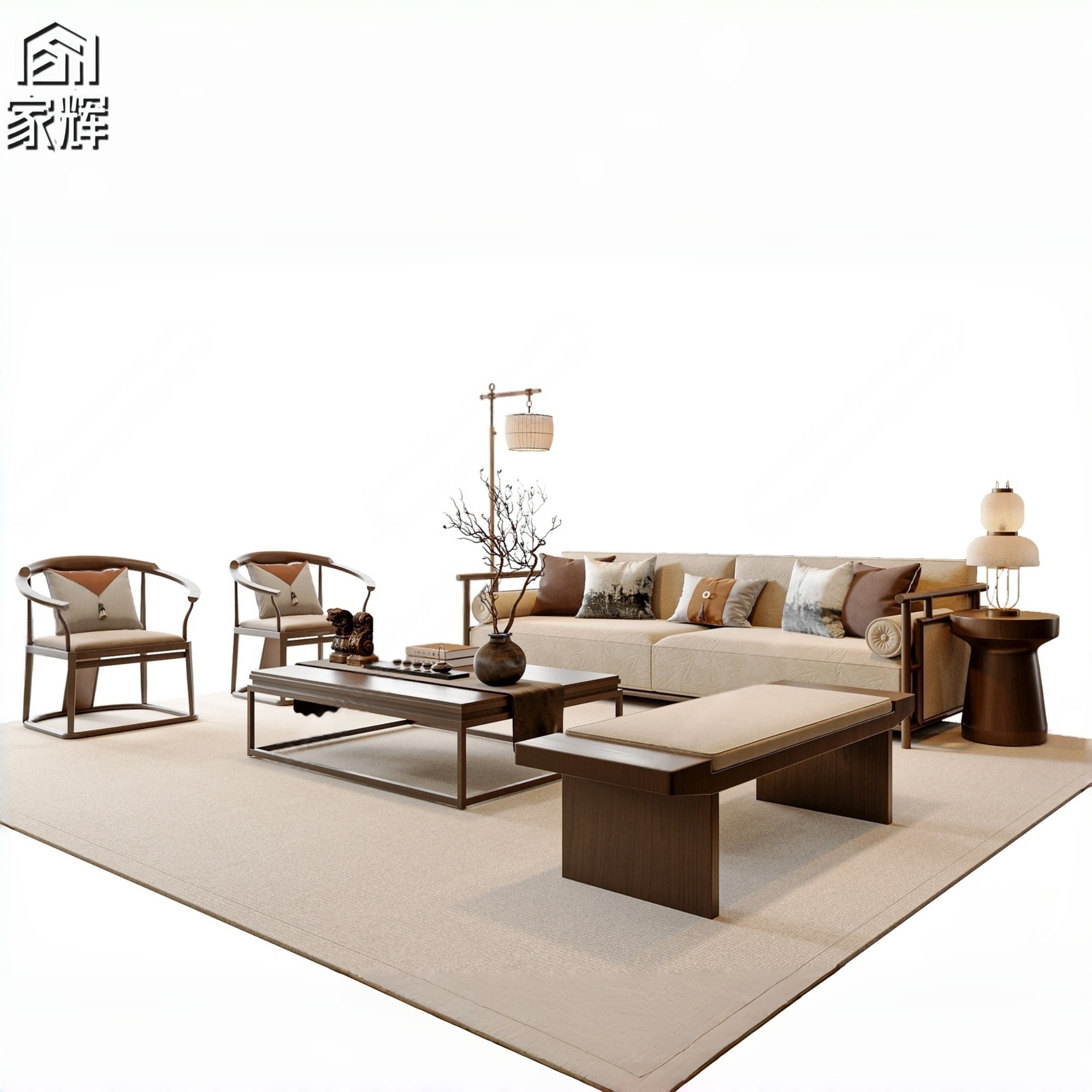 新中式实木沙发组合禅意轻奢现代宋氏美学客厅样板房定制布艺家具