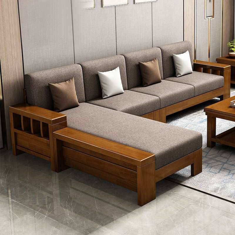 中式实木现代简约沙发组合出租房沙发小户型客厅贵妃转角布艺沙发