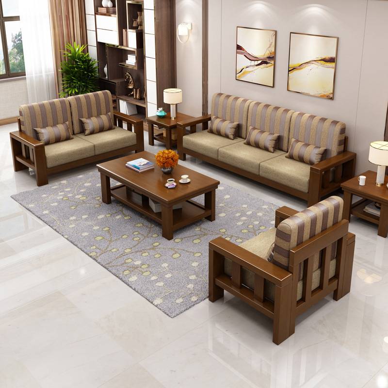 中式实木沙发组合大小户型冬夏两用客厅布艺沙发现代简约木质家具