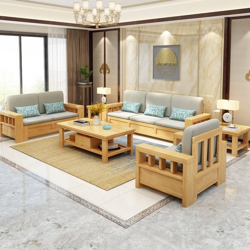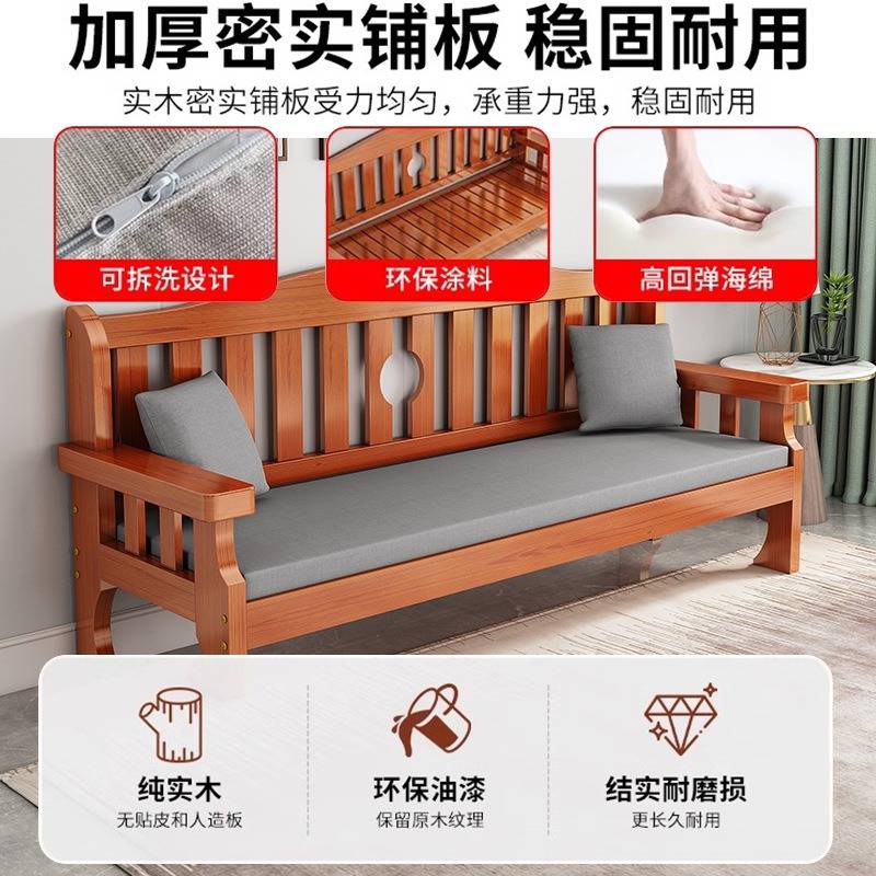 中式全实木沙发组合家用客厅现代简约小户型三人位木质布艺沙发床