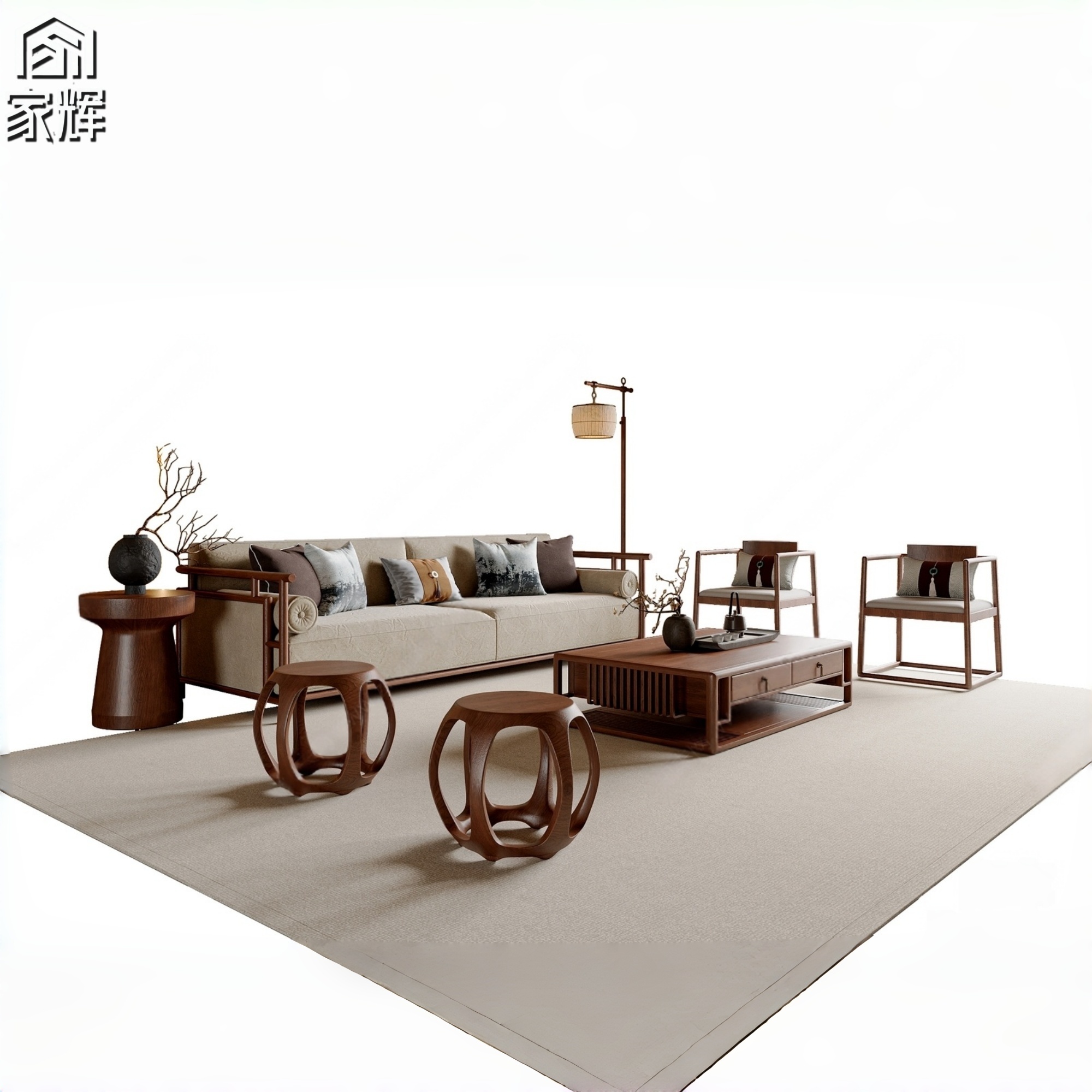 新中式沙发组合黑胡桃木沙发实木禅意家用客厅布艺软装办公室沙发