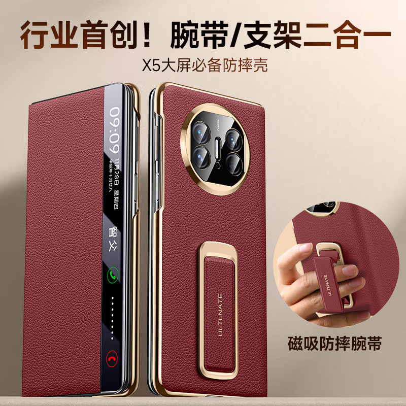 [顺丰现货]适用华为x5手机壳外壳高端超薄matex5新款折叠屏防摔腕带x3典藏版真皮智能翻盖镜头全包保护套男女