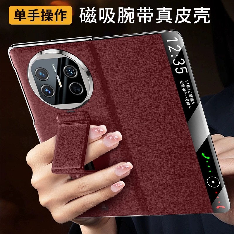 [现货速发]适用华为x5手机壳高端超薄matex5新款折叠屏防摔腕带外壳x3典藏版真皮智能翻盖镜头全包保护套男女