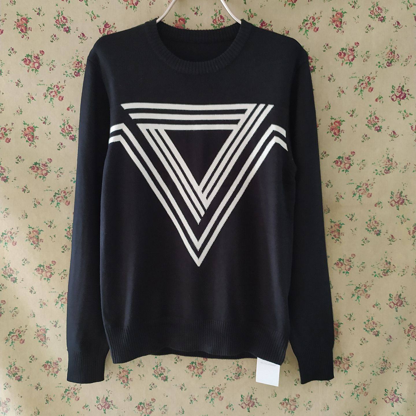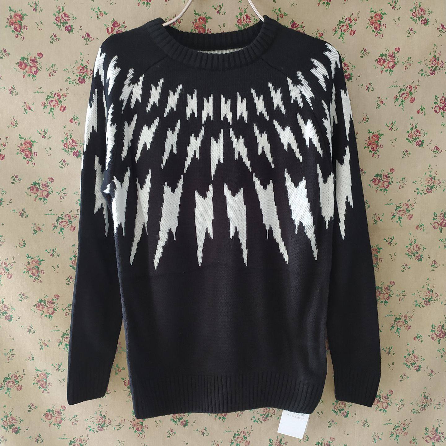 特价专柜正品秋冬时尚百搭圆领套头毛衣女黑白间色上衣长袖MAC23