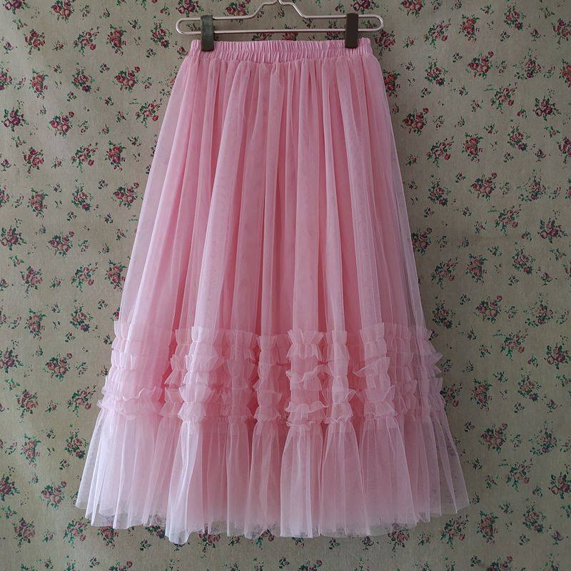 自然元素正品粉网纱半身裙女裙中长款蛋糕蓬蓬裙公主大摆裙ESS08