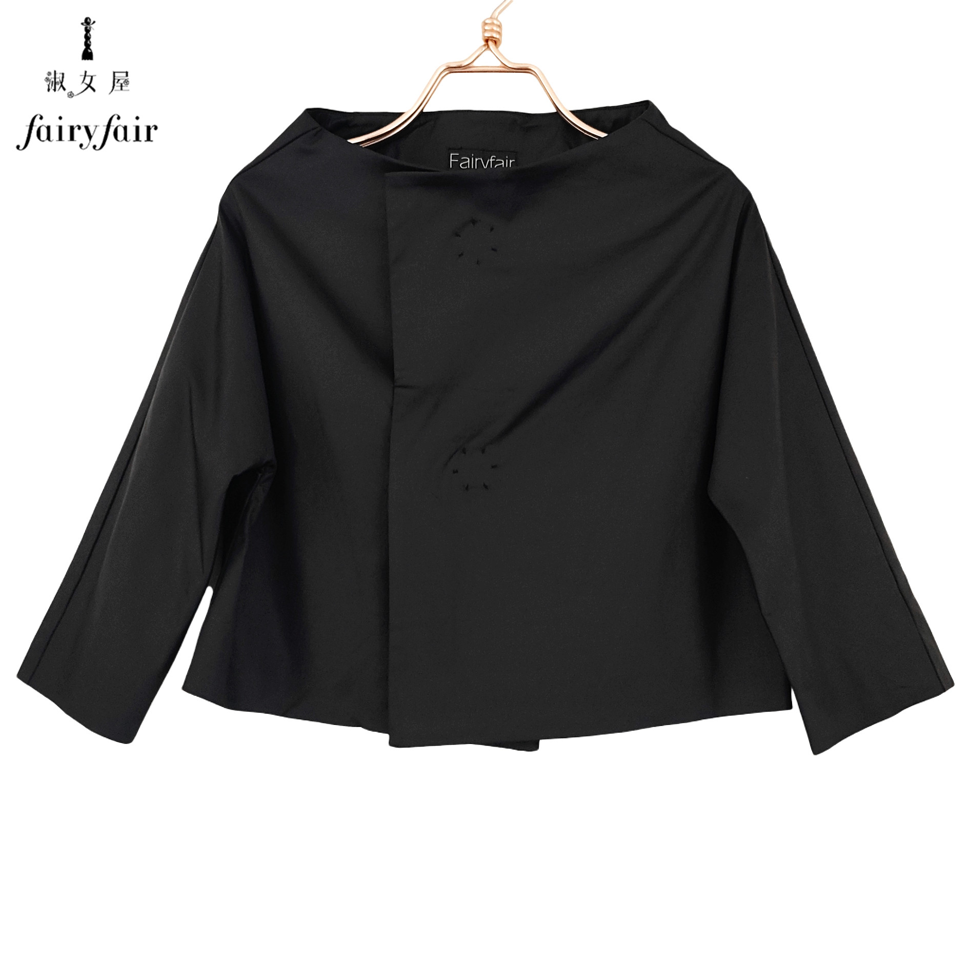 淑女屋高端FAIRYFAIR专柜正品秋季法式按扣黑色七分袖短款外套女
